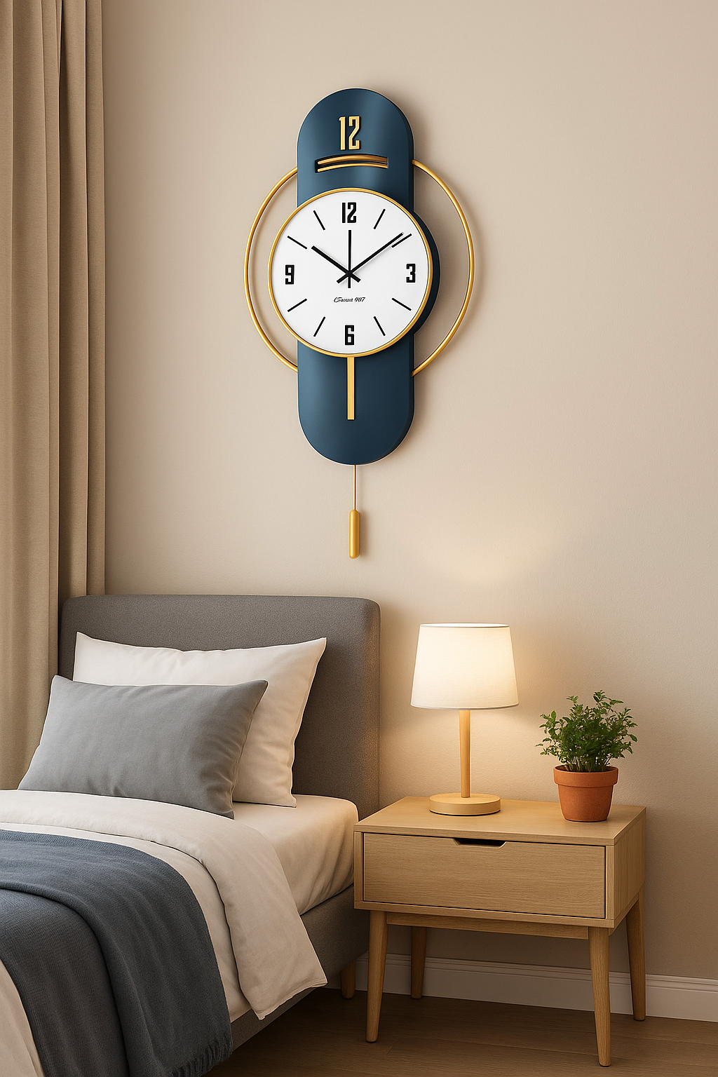 Made with durable materials, the clock ensures long-lasting performance and accurate timekeeping while blending seamlessly with both light and dark wall tones. The minimalist yet stylish pendulum design enhances the overall charm, making it suitable for homes that value both functionality and aesthetics.